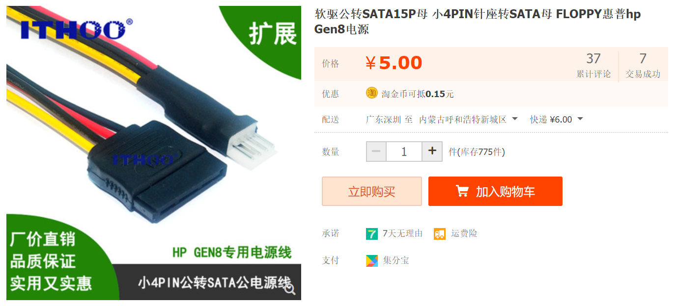 然而,Gen10 的 PSU 并没有多余的电源线,你能利用的只有那个小 4P 插头。所以你需要买这样的转接线:
